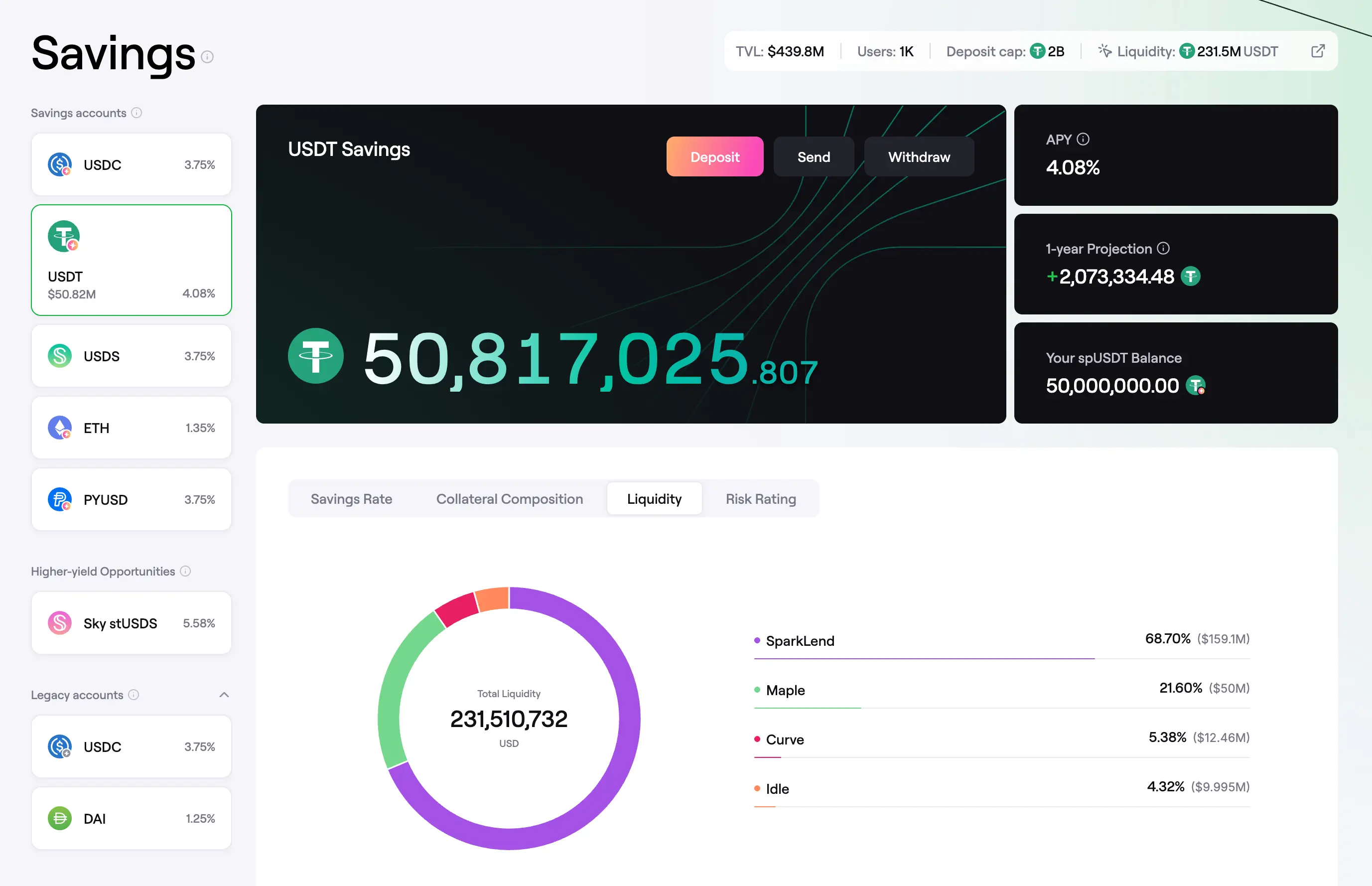- Navigate to the Savings page in the Spark App and select the USDC or USDT vault.
