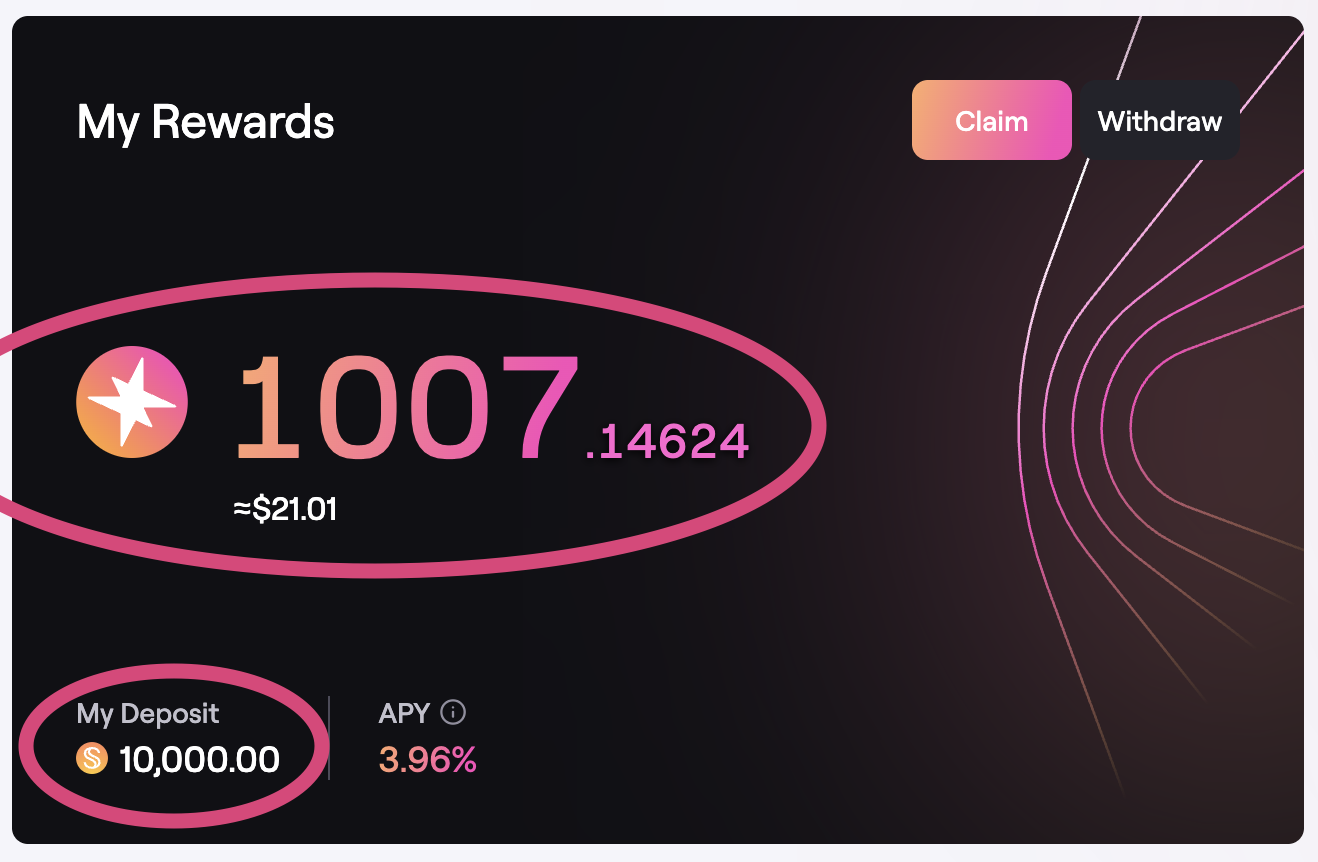 Overview of earned rewards and your deposit