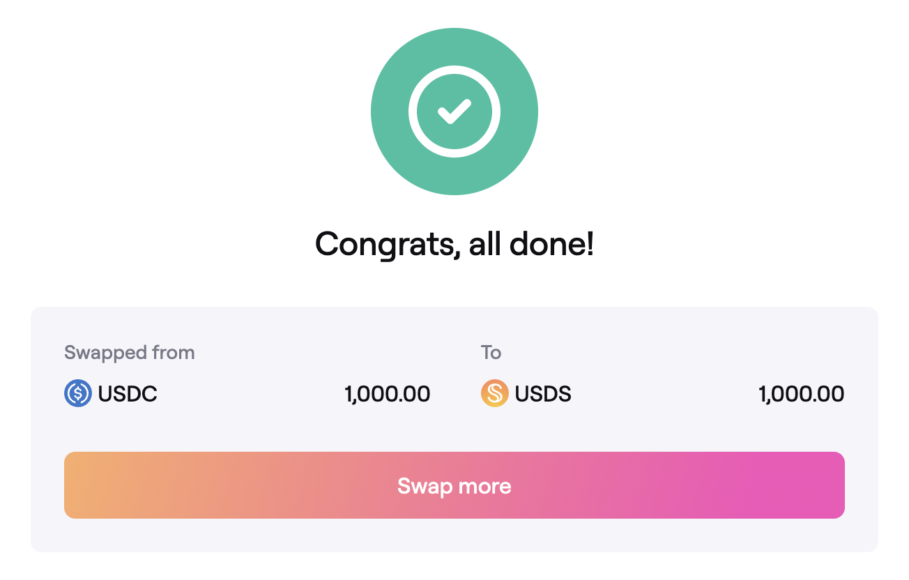 Confirmation: USDC Swapped to USDS