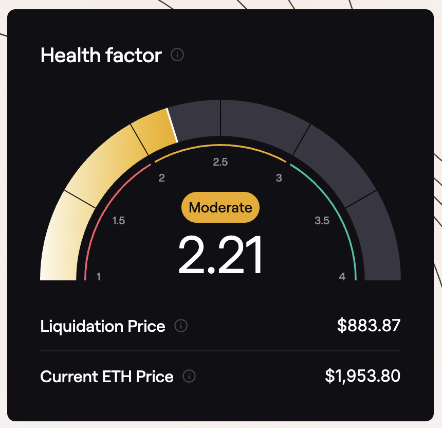 The Dashboard also displays the current Health Factor of the borrow position.
