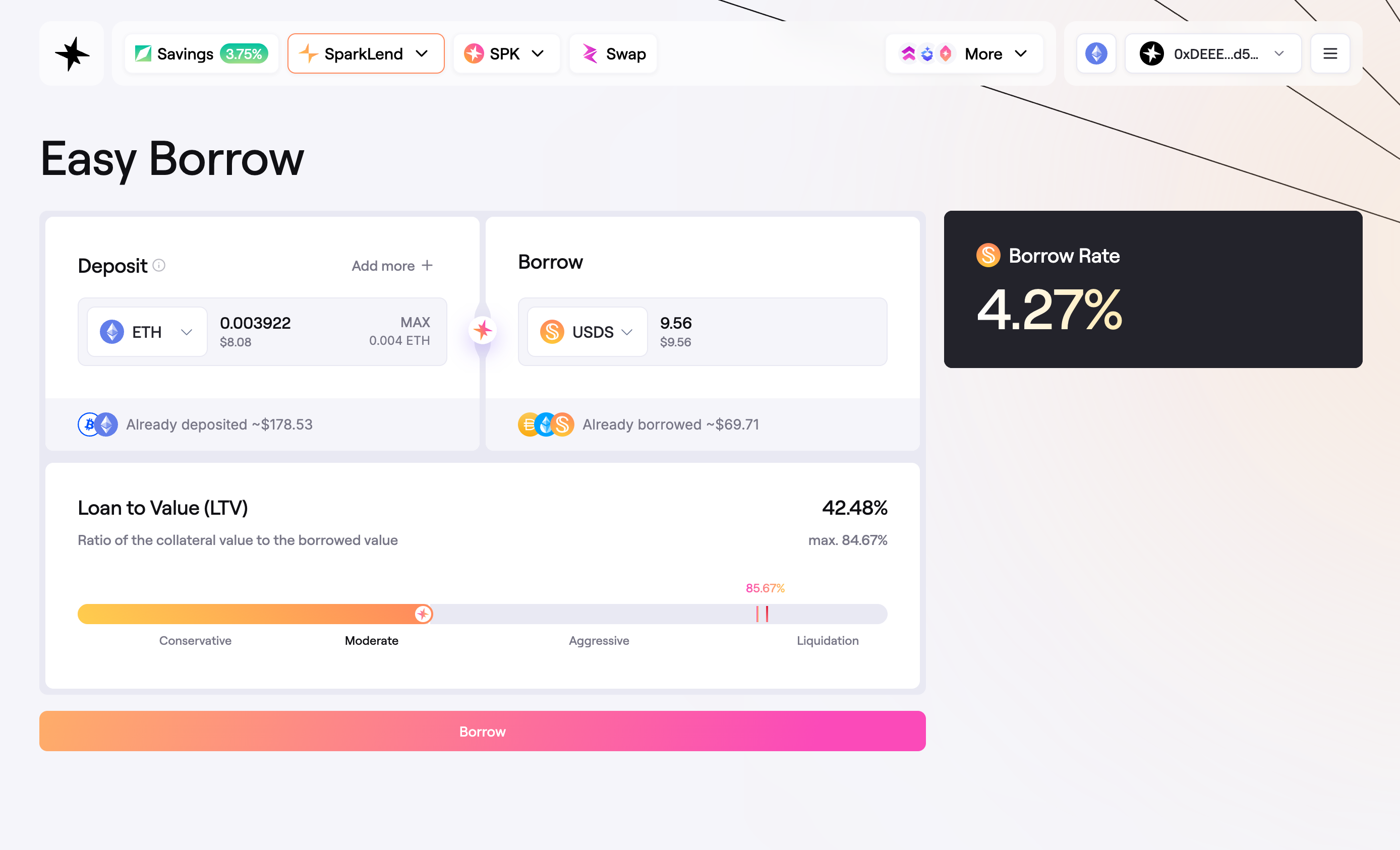 Once the parameters for the borrow position has been set, you click Borrow.