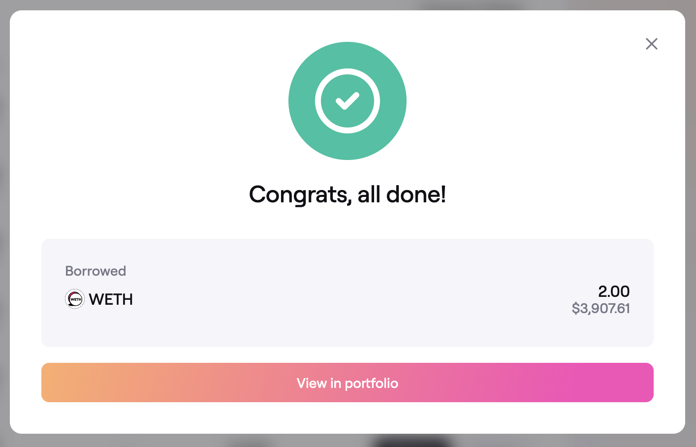 - To borrow assets navigate to the My portfolio page and scroll down to the Borrow section.