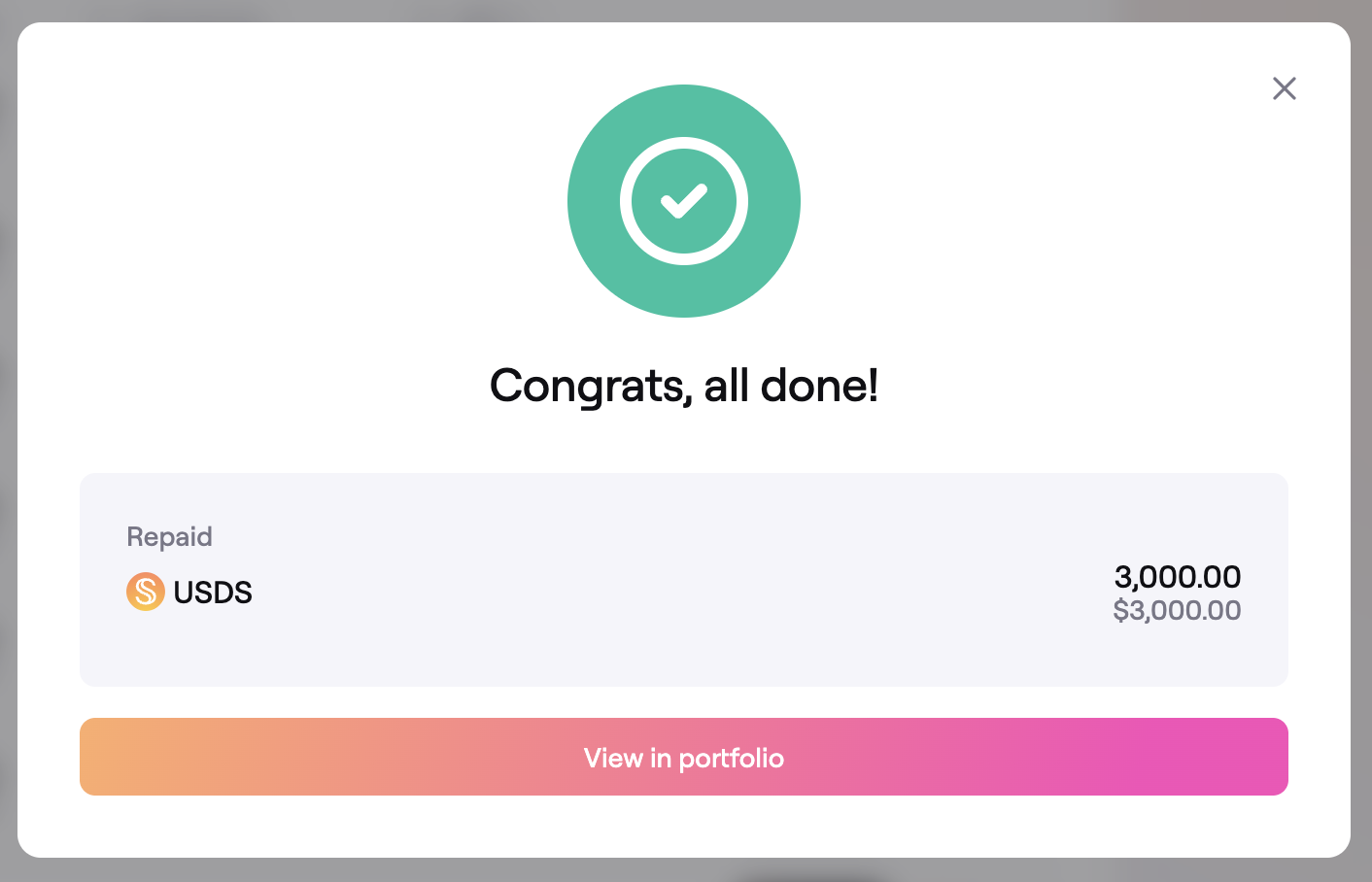 - To repay your loan, navigate to the My portfolio page and find the Borrow section. Assets that you have borrowed will show up in the Your borrow column.